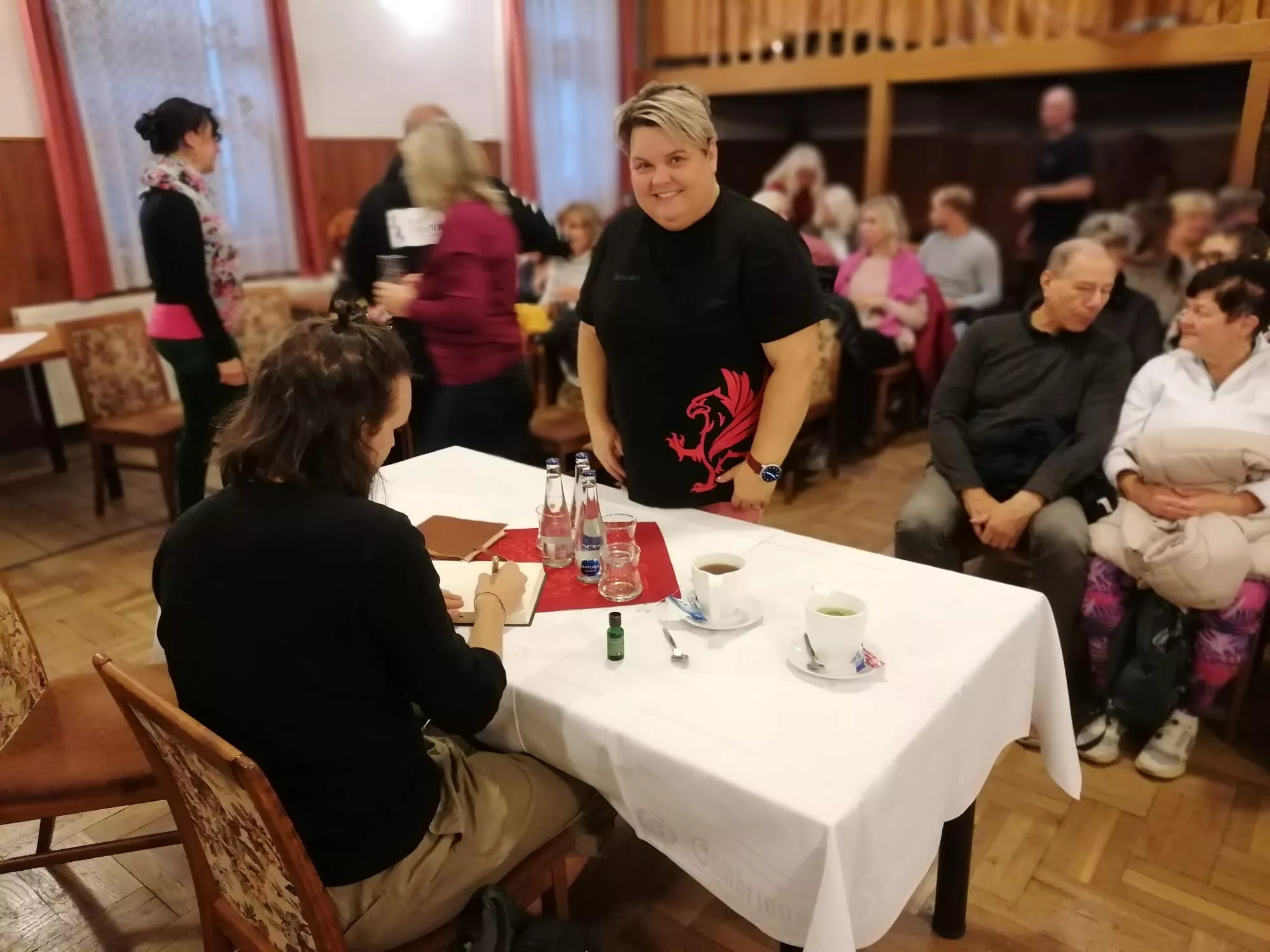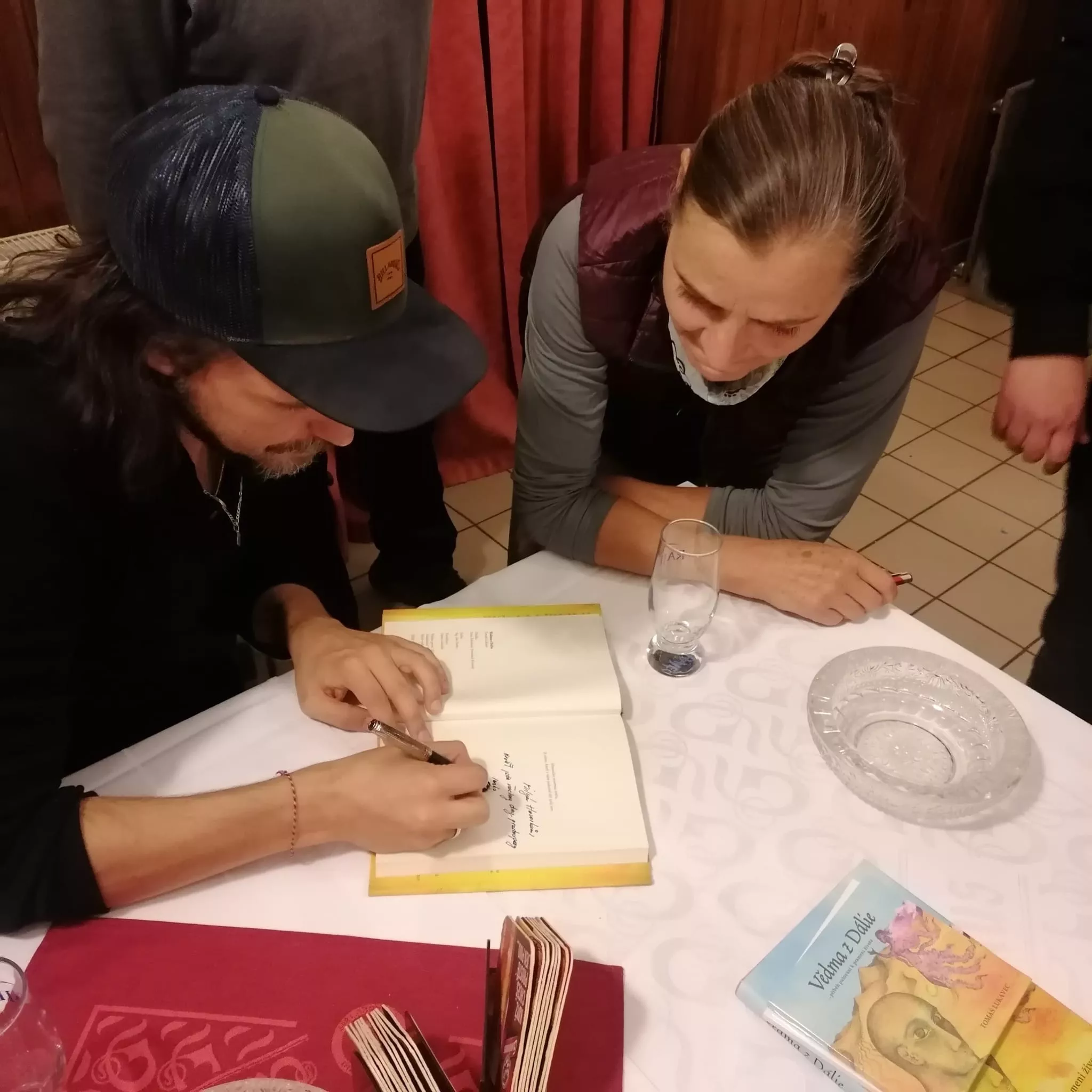 Pohoda, přátelství, pospolitost a porozumění během tříhodinového odpovídání na všechny naše otázky. Tomáš se nechal krásně unést a ke každé odpovědi jsme dostali i vtipný příběh z některé z jeho cest. Mluví z něj pokora a moudrost nasbíraná po světě, i když zůstává srdíčkem stále v Čechách. Čtvrtou hodinu se Tomáš věnoval každému, kdo si k němu přišel pro fotku či pro podpis do knihy, nikoho neošidil.