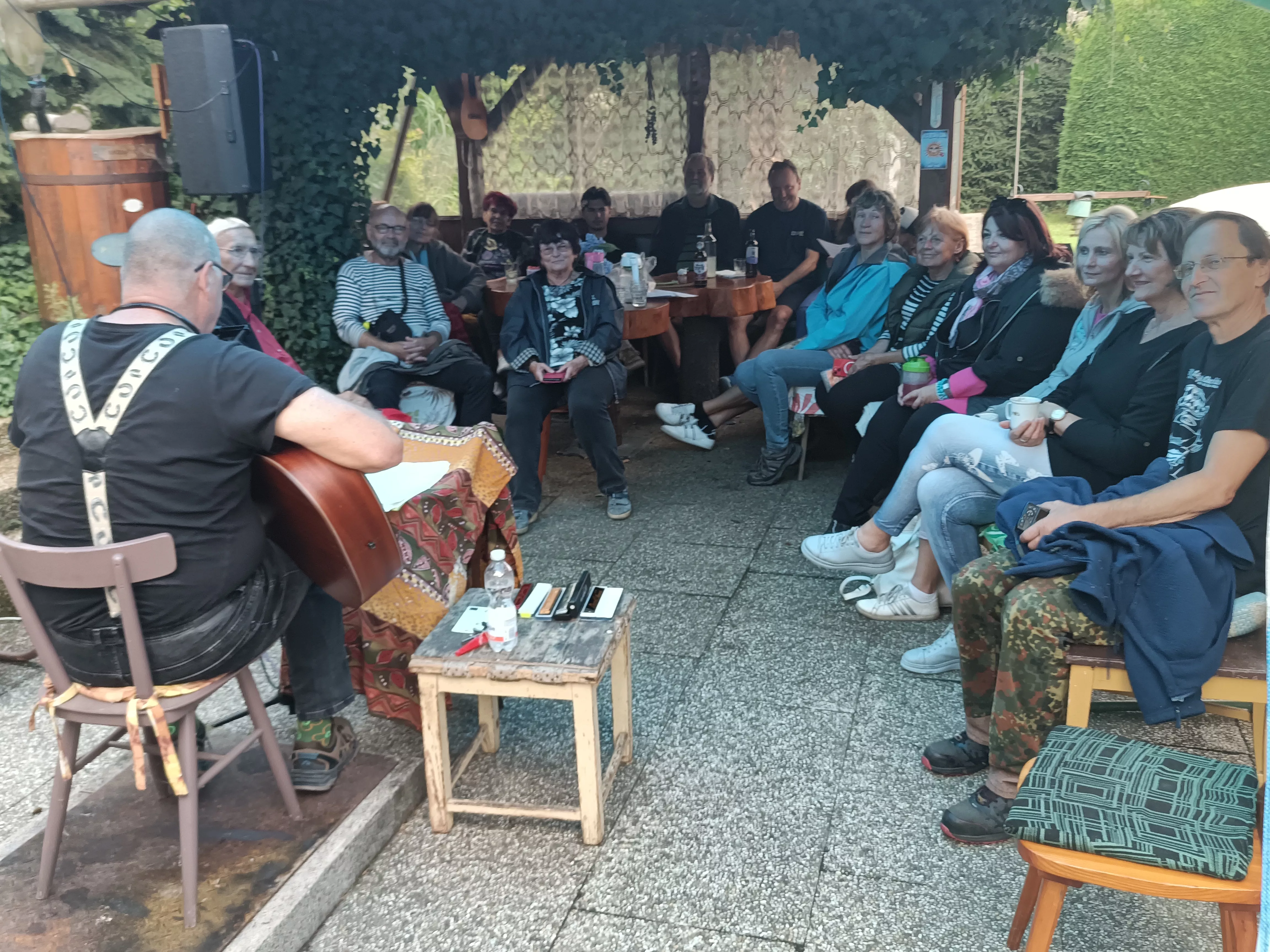 Studenovodské nedělní odpoledne 27. 7. 2025 přitáhlo asi 20 účastníků koncertu Jindřicha Kubánka, písničkáře a blogera. Jeho hudba je hezká nejen k poslechu, ale také podnětná k zamyšlení nad systémovými problémy, o nichž zpívá.