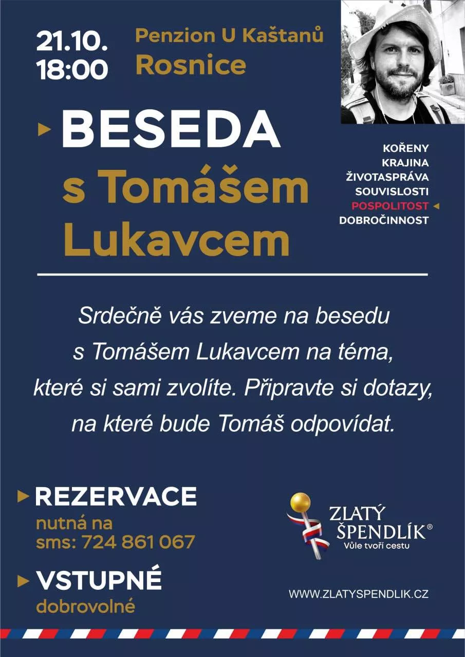 Srdečně vás zveme na besedu s Tomášem Lukavcem na téma, které si sami zvolíte.